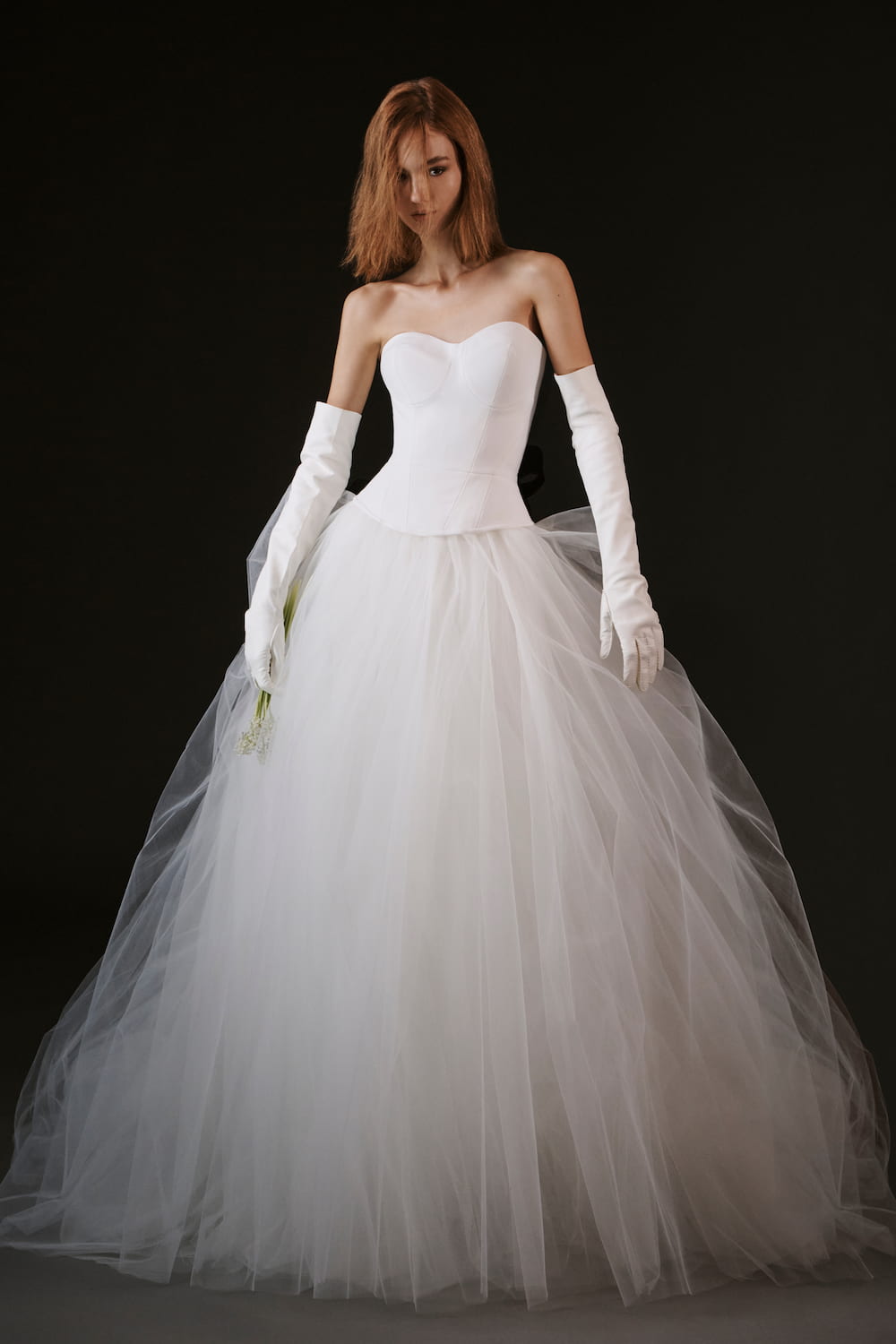 “Avianna” è un abito da sposa principessa in cady e tulle con bustier a cuore e dettagli drappeggiati. Un sogno romantico firmato Vera Wang Bride for Pronovias.