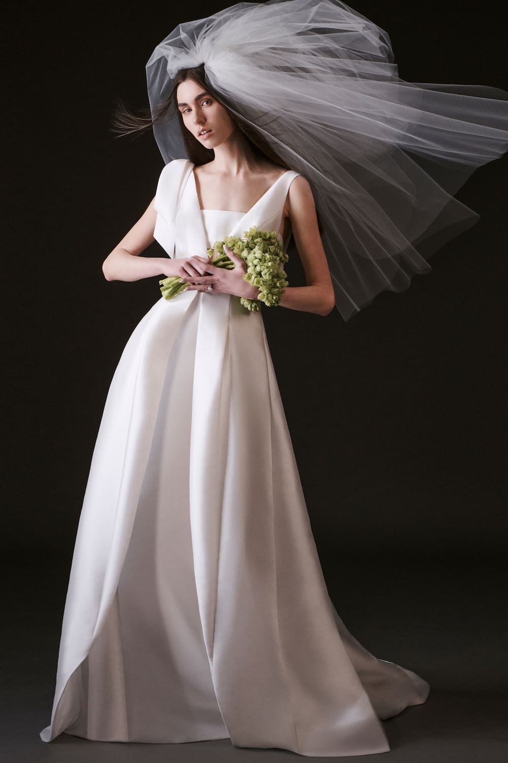 “Ellasandra” incarna l’essenza dello stile sofisticato e contemporaneo di Vera Wang Bride for Pronovias, unendo eleganza minimal e creatività sartoriale. Realizzato in mikado di altissima qualità, questo straordinario abito da sposa si distingue per la sua struttura a tre pezzi, pensata per una sposa moderna, audace e raffinata.
